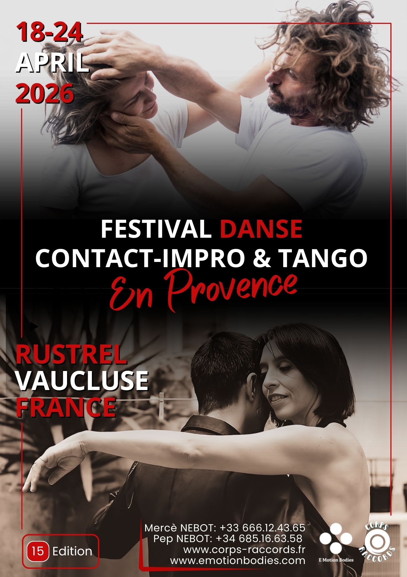 15th edition of the Festival of Contact Improvisation & Tango in the French Province, in Rustrel, one of the most beautiful villages in France, located north of Apt and at the foot of the Monts de Vaucluse. A unique opportunity of immersion for 7 days, for 35 participants, to experience an exploration of dance and movement with quality workshops, jams, live music and many other proposals to share.